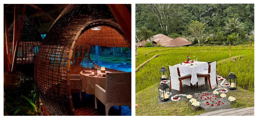 Private villas with their own pools and river views allow mornings to begin with gentle sunlight and the sound of flowing water. Days can be spent exploring traditional Balinese rituals, enjoying couples’ spa journeys, or simply savoring quiet moments together in the lush tropical surroundings.
